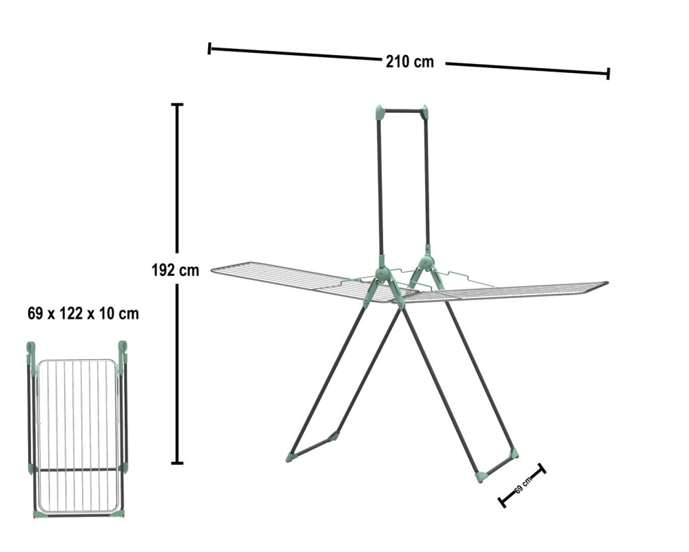 Kivételesen tágas - a Titano álló ruhaszárító egyik legnagyobb előnye a mérete. Teljesen kinyitva 210 x 192 x 69 cm, ami hatalmas helyet biztosít a ruhák szárításához, így ideális választás nagy családok számára.