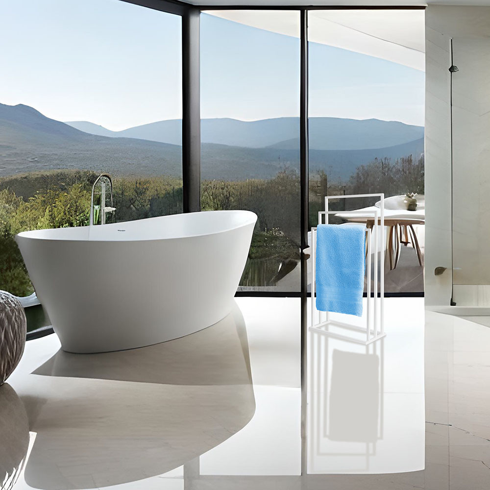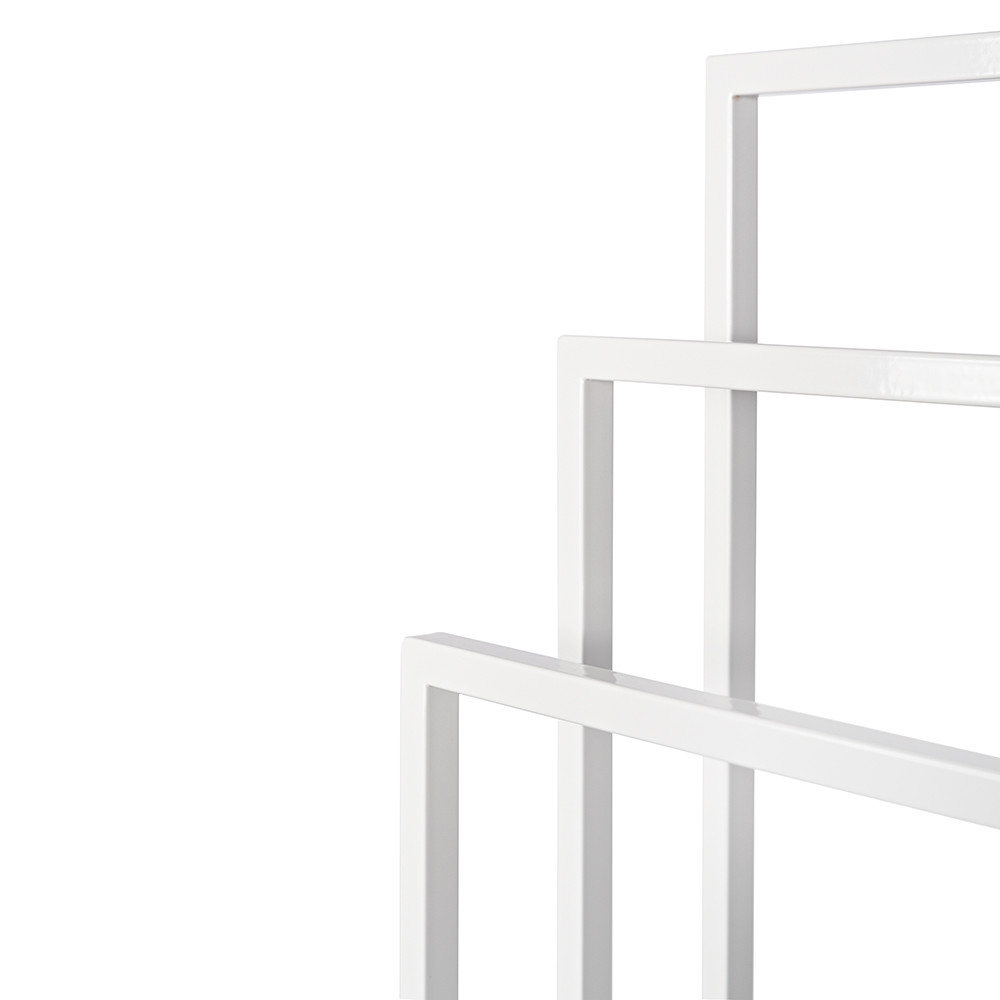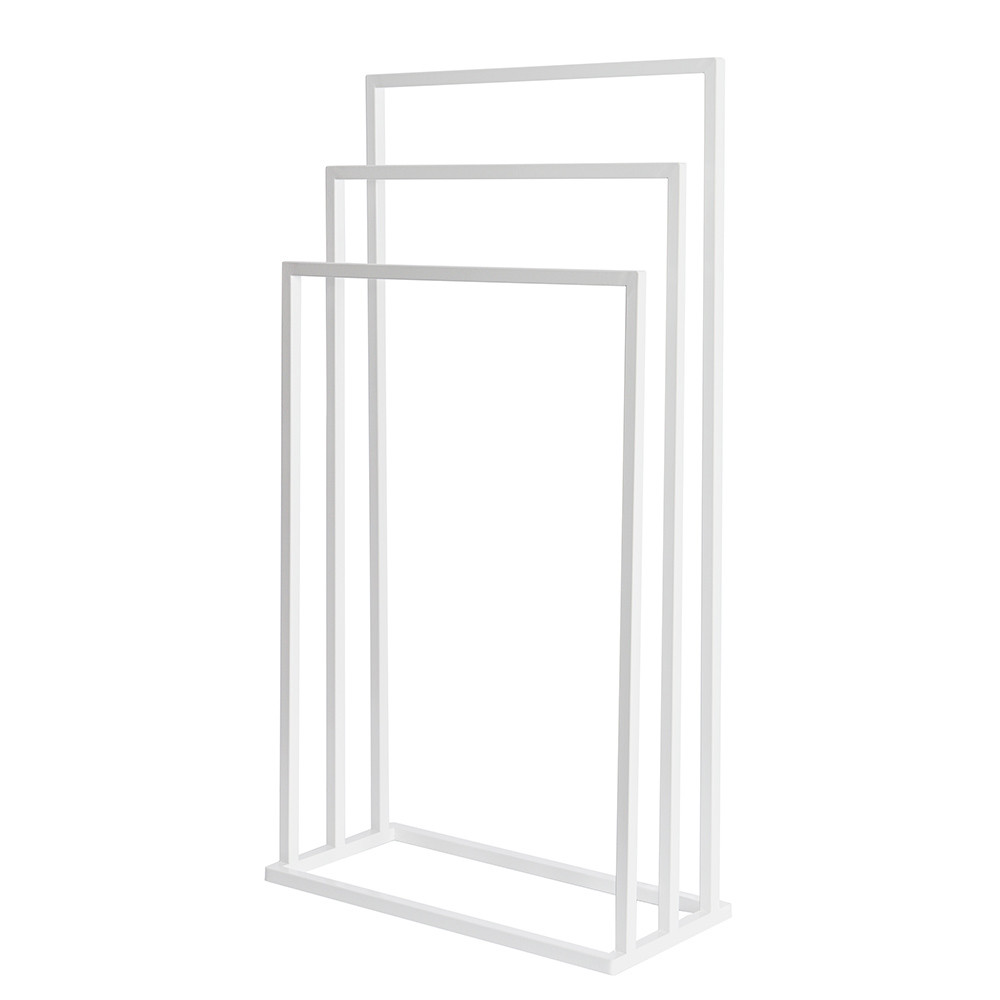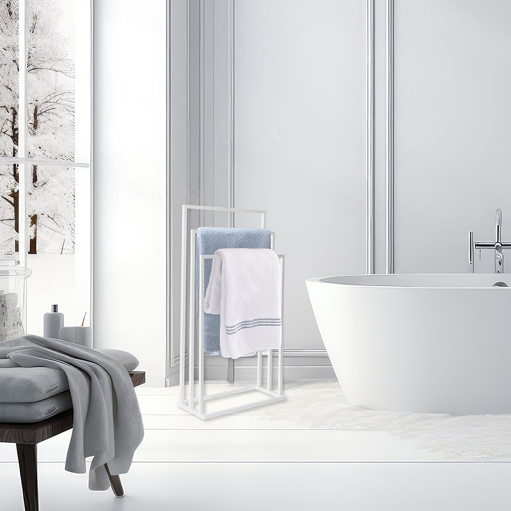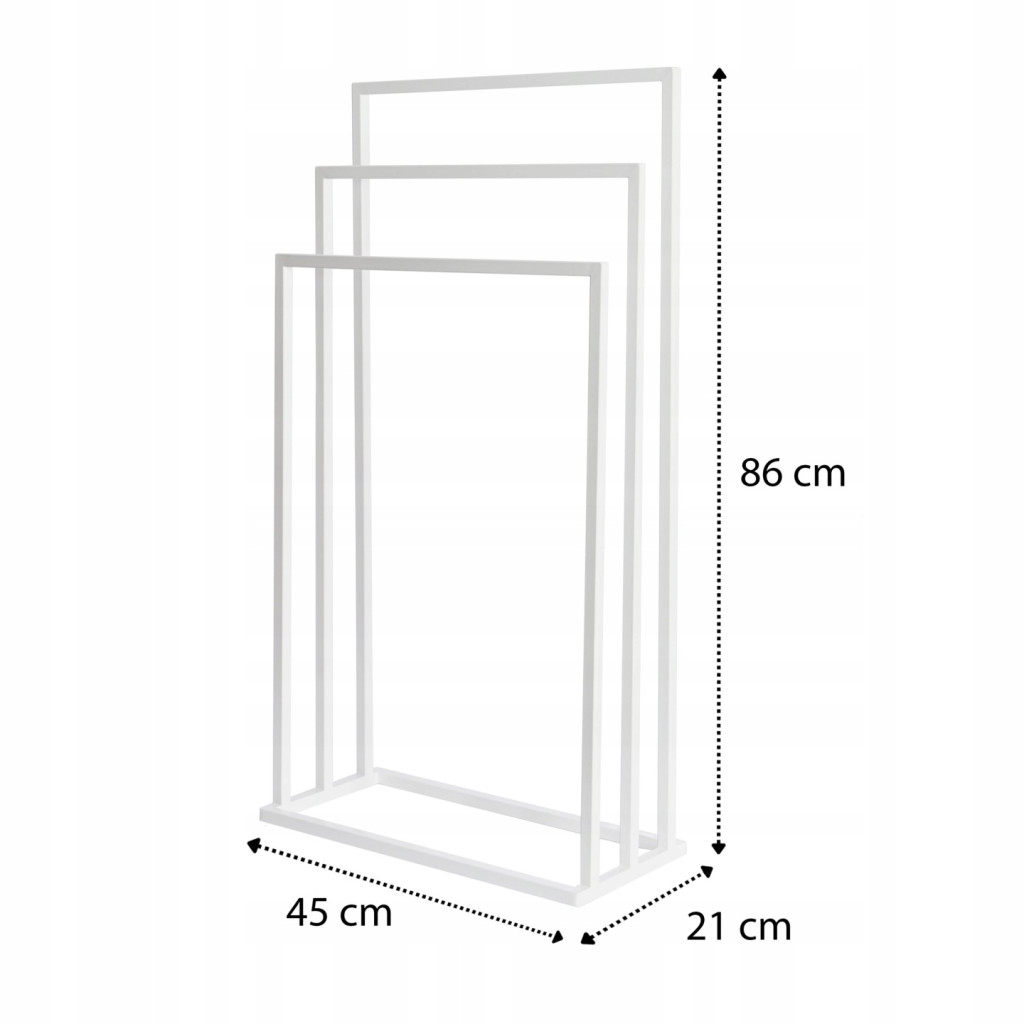 Varázsolj eleganciát és rendet a fürdőszobádba ezzel a prémium minőségű törölközőtartó állvánnyal! A modern, letisztult dizájn tökéletesen ötvözi az esztétikát a mindennapi praktikummal, így klasszikus és indusztriális (loft) enteriőrökbe egyaránt nagyszerűen illeszkedik. A stabil, porszórt acél váz ellenáll a fürdőszobai párának és nedvességnek, garantálva a hosszú élettartamot. A három, lépcsőzetesen elhelyezett tartókar (86 cm, 76 cm és 66 cm) optimális légáramlást biztosít, ami jelentősen felgyorsítja a nedves törölközők száradási idejét. Hatalmas előnye, hogy megkímél a fúrástól és a barkácsolástól: az állvány teljesen összeszerelve érkezik, így azonnal a kívánt helyre állítható.