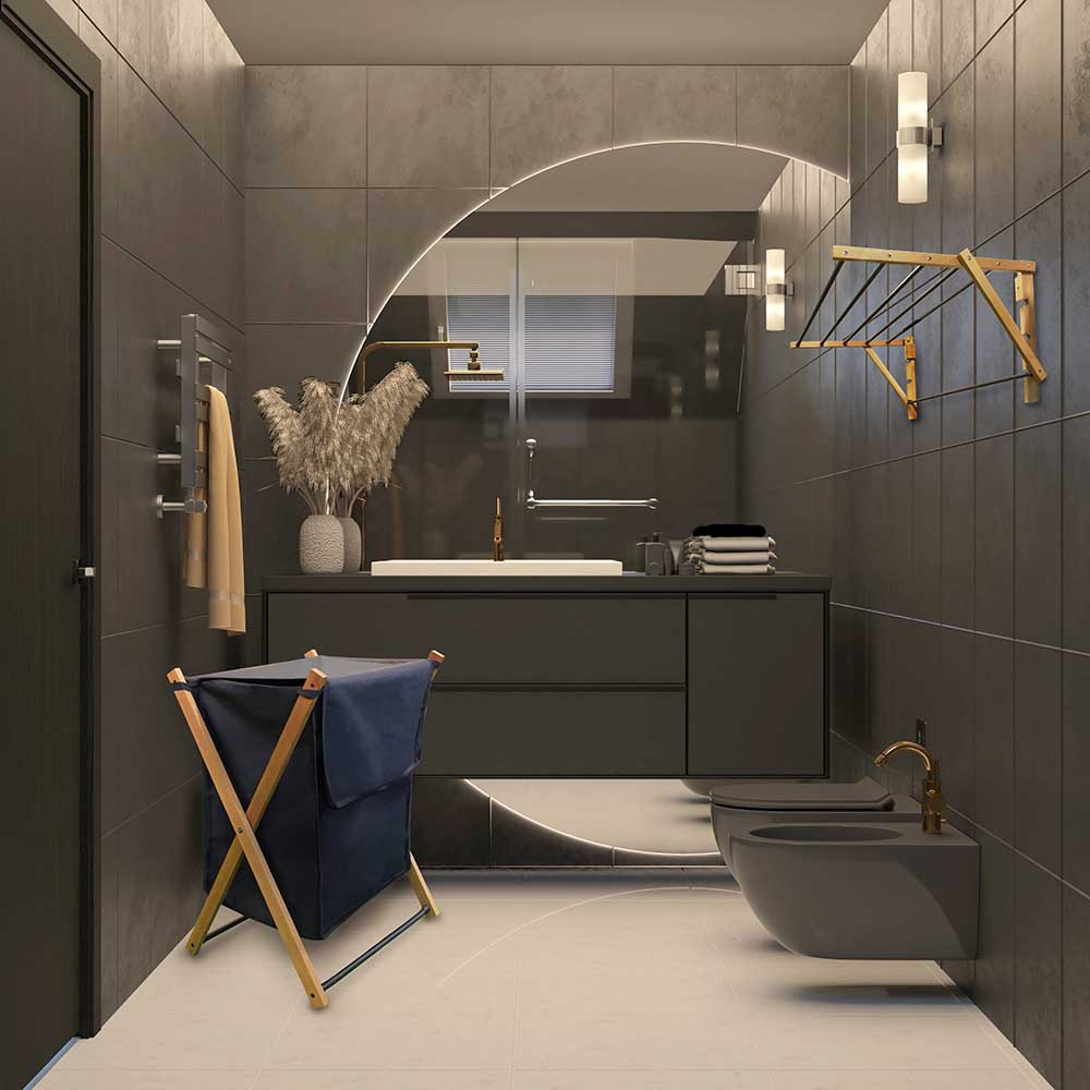 A 39 literes kapacitású Aurora Loft összecsukható szennyestartó stílusos és környezetbarát alternatívája a hagyományos műanyag kosaraknak. Az FSC minősítésű kőrisfából és korrózióálló fekete acélból készült tartó egyedi technológiájának köszönhetően vegyszermentesen áll ellen a nedvességnek és a hőmérséklet-ingadozásoknak. Stabil, elegáns és rendkívül praktikus: pillanatok alatt összecsukható, így helytakarékosan tárolható, belső szövete pedig nem szívja be a kellemetlen szagokat.