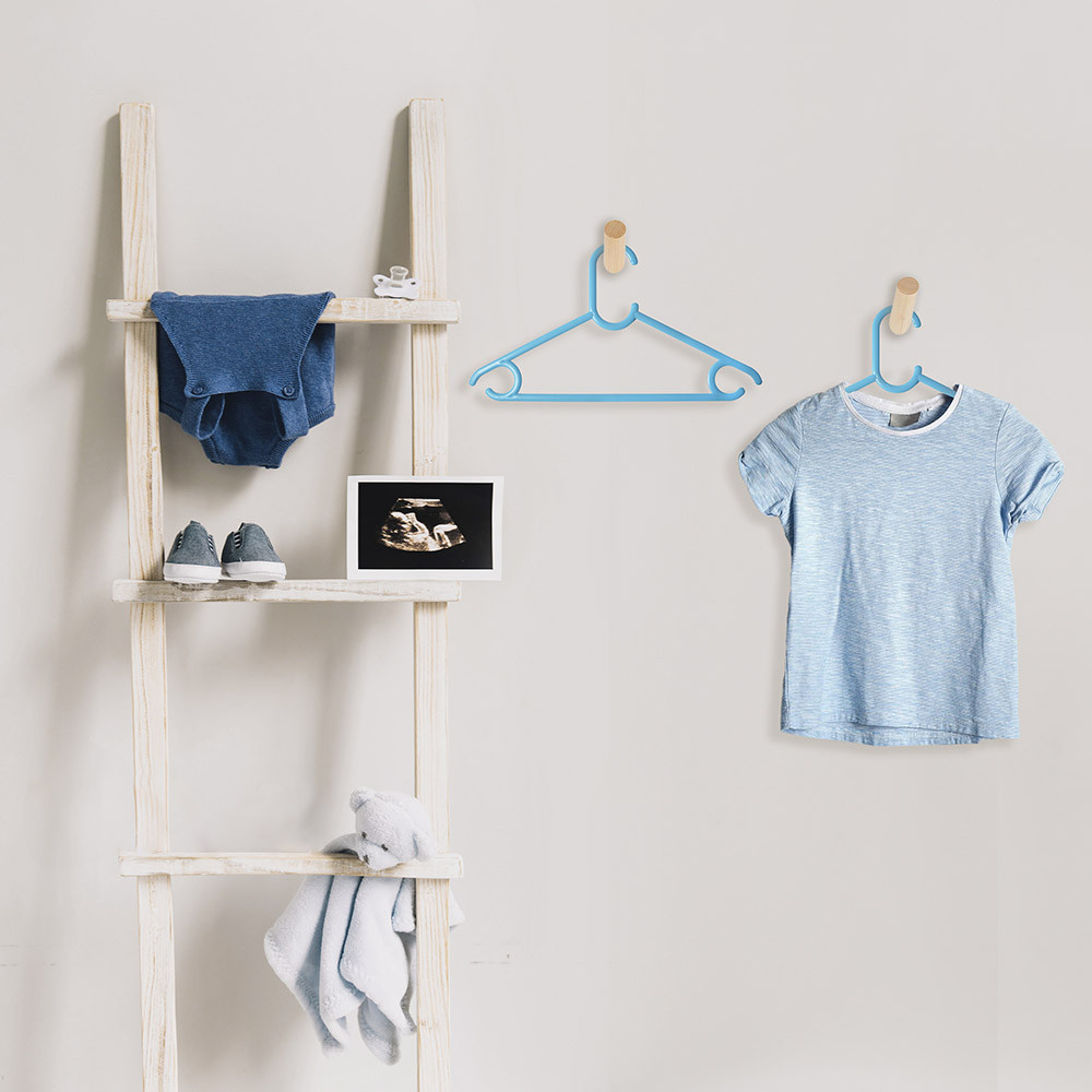 Rend a lelke mindennek, különösen, ha a gyerekruhákról van szó! Ez a klasszikus, kék műanyag vállfa szett tökéletes és praktikus választás a kisebb méretű ingek, pulóverek, ruhák, nadrágok és kabátok tárolására. Ergonomikus formája kifejezetten a gyermekruhák és a finomabb szövetek igényeihez lett igazítva, megelőzve a kedvenc darabok megnyúlását és gyűrődését. A kiváló minőségű műanyag garantálja a tartósságot és a hosszú élettartamot, míg a karcsú, minimalista dizájn segít maximalizálni a szekrényben rendelkezésre álló helyet. Tisztántartásuk is gyerekjáték: portalanításukhoz elegendő egy nedves törlőkendővel áttörölni a felületüket.